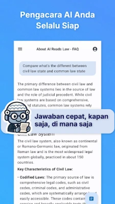 AI Baca Hukum: Asisten Hukum adalah chatbot AI dan asisten riset hukum personal Anda. Temukan jawaban cepat mengenai undang-undang, yurisprudensi, dan istilah hukum. Ubah teks hukum menjadi format audio untuk dipelajari kapan saja. Solusi cerdas Anda untuk kompleksitas hukum.