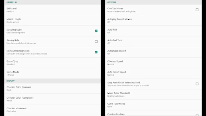 Kustomisasi adalah kunci di Backgammon NJ for Android, menawarkan lebih banyak pilihan daripada aplikasi backgammon lainnya. Anda dapat memilih antara mode permainan Standar atau Nackgammon, bermain sendiri melawan komputer, atau berhadapan langsung dengan teman dalam mode 2-pemain pada satu perangkat. Jelajahi empat tingkat kesulitan—Mulai dari Mudah hingga Pakar—untuk menemukan tantangan yang sesuai. Berbagai fitur seperti kubus pengganda, aturan Crawford, hingga opsi papan yang dapat dibalik memastikan setiap pertandingan terasa segar dan sesuai preferensi Anda. Antarmuka 'ketuk untuk bergerak' yang intuitif, bersama dengan statistik permainan mendalam dan analisis pertandingan (tersedia melalui pembelian dalam aplikasi), menjadikan Backgammon NJ for Android teman sempurna Anda dalam perjalanan menguasai backgammon.