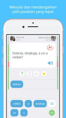 Aplikasi LinGo dirancang untuk efisiensi maksimal, memungkinkan Anda menyerap materi baru dan memperkuat ingatan hanya dalam 10-15 menit setiap hari. Fleksibilitasnya berarti Anda bisa belajar di mana saja dan kapan saja—saat bepergian, di sela-sela aktivitas, atau di waktu senggang di rumah. Dengan fokus pada frasa dan kosakata praktis yang relevan dengan kehidupan sehari-hari, Anda akan segera berbicara Bahasa Polandia dengan lancar dan percaya diri. Raih sertifikat kemahiran sebagai bukti pencapaian Anda dan bergabunglah dengan jutaan pengguna di seluruh dunia yang telah memilih LinGo untuk perjalanan bahasa mereka.