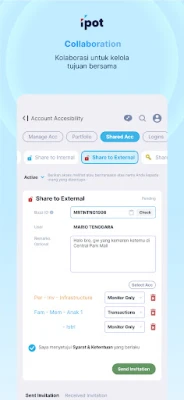 IPOT menyediakan fleksibilitas tak tertandingi, memungkinkan Anda berinvestasi secara mandiri atau berkolaborasi. Dengan fitur Shared Access, ajak keluarga atau teman untuk mengelola portofolio bersama secara transparan, bahkan orang tua dapat memperkenalkan investasi sejak dini kepada anak. Bagi mereka yang mencari bimbingan, bergabunglah dalam komunitas aktif atau manfaatkan akses khusus untuk mentor berpengalaman. Sementara itu, penasihat profesional dapat memantau portofolio klien secara *real-time* dengan mulus. Pisahkan tujuan finansial Anda dengan Multi Account, serta nikmati kecepatan IPOT Stock untuk *trading* saham, akses lebih dari 250 pilihan di IPOT Fund, dan temukan peluang eksklusif di IPOT Bond, termasuk penawaran perdana obligasi korporasi.