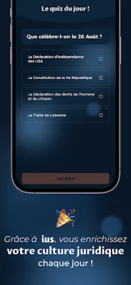 Di dalam ius, Anda akan menemukan lebih dari 10.000 Soal Pilihan Ganda (QCM) dan kartu kilat (flashcard) yang secara rutin diperbarui dan diperkaya dengan konten baru setiap minggu. Namun ius lebih dari sekadar alat bantu ujian. Kembangkan wawasan dan budaya hukum Anda setiap hari melalui "Kuis Harian" dan QCM khusus yang mencakup periode sejarah hukum penting, tokoh-tokoh besar dalam hukum, hingga adagium Latin. Ini adalah cara yang menyenangkan untuk memperkuat fondasi pengetahuan Anda, memperluas cakrawala hukum, dan memahami isu-isu hukum terkini di luar kurikulum standar.