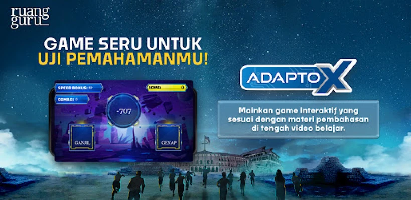 Inti dari pengalaman belajar digital ini terletak pada ruangbelajar, sebuah fitur kaya inovasi yang menghadirkan materi pelajaran adaptif dan interaktif. Di sini, kamu akan menemukan Adapto, video pembelajaran yang secara cerdas menyesuaikan dengan tingkat pemahamanmu, serta Banksoal, koleksi lebih dari 400 ribu soal latihan untuk persiapan matang menghadapi berbagai ujian, termasuk SNBT. Ruangguru juga menyediakan fitur-fitur personalisasi seperti Playlist Belajar dan Playlist Rangkuman, kini selaras dengan Kurikulum Merdeka. Dari animasi interaktif di Zona Berlatih untuk siswa SD, game edukatif di AdaptoX dan Konsep Kilat yang ringkas untuk jenjang SMP-SMA/SMK, hingga UTBK Center lengkap dengan strategi terkini, tryout berkala sistem IRT, Tes Minat & Bakat, dan rasionalisasi SNBP untuk calon mahasiswa, setiap jenjang pendidikan mendapatkan dukungan belajar yang disesuaikan secara optimal.