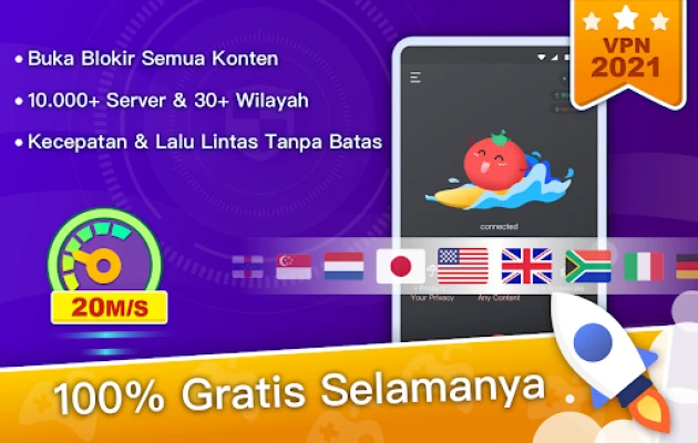 VPN Tomato Gratis menawarkan VPN 100% gratis, cepat, dan stabil. Sembunyikan alamat IP Anda, enkripsi lalu lintas internet, dan buka blokir situs, aplikasi, serta game global. Dapatkan akses konten tanpa batas secara aman dan anonim, mengatasi pembatasan geografis dengan mudah.